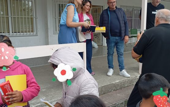 Η κα Μπαζή, αφού συνομίλησε με τα παιδιά και το εκπαιδευτικό προσωπικό σχετικά με τη φοίτησή τους και την τακτική συμμετοχή τους στο σχολείο, μοίρασε γραφική ύλη, διάφορα παζλ, παραμύθια και γλυκίσματα στα παιδιά, προσφορά από το Κοινωνικό Παντοπωλείο του Δήμου Καρδίτσας, εκφράζοντας τις πιο θερμές ευχές της για “Καλή Σχολική Χρονιά”. Οι μικροί μαθητές ανταποκρίθηκαν με ιδιαίτερο ενθουσιασμό και χαρά.